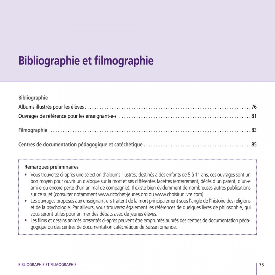 PrésentationCe dossier de 88 pages couleur a pour objectif de fournir aux enseignant-e-s quelques repères pour ouvrir un espace de parole avec leurs élèves sur la question de la mort. Il offre de nombreuses pistes pédagogiques et des contes autour de la mort, des informations pratiques et des références bibliographiques, sans oublier un riche corpus de notes (perception de la mort chez les enfants, rites et pratiques dans les principales traditions religieuses, exemples de deuils vécus en classe…). |